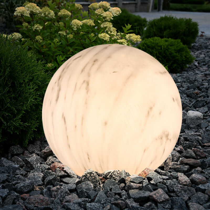 Descrizione La bellissima sfera di plastica (Ø 25 cm) in effetto marmo è alimentata a batteria e può essere facilmente integrata nel vostro spazio esterno grazie alla classe di protezione IP44. Il punto luce in plastica bianca ti offre otto ore di luce e la luce che emette contribuisce a creare un'atmosfera piacevole. La lampadina a LED è installata in modo permanente nella lampada. Particolare lampada • Tipo di luce: luce solare • Materiale: plastica • Colore: bianco, grigio • Interruttore • Pacco batteria • Grado di protezione: IP44 • Autonomia: circa 8 ore • Diametro sfera x altezza in cm: 25 x 26 • Illuminante: 1x LED • Lampadina inclusa: sì • Temperatura colore: 3000 Kelvin • Colore della luce: bianco caldo • Tensione: 3V