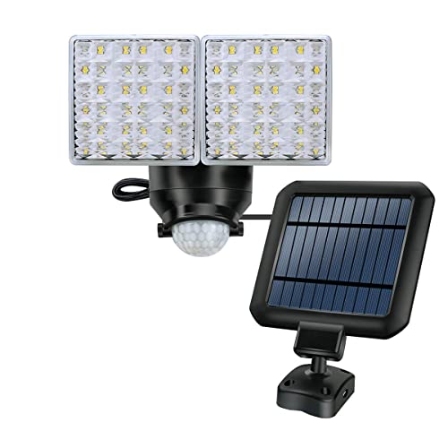 Lampada di sicurezza ad energia solare con sensore di movimento 1200LM, Luce a 5000 Kelvin, con doppia lampada ad angolazione regolabile, design compatto ed elegante adatta per garage, giardino