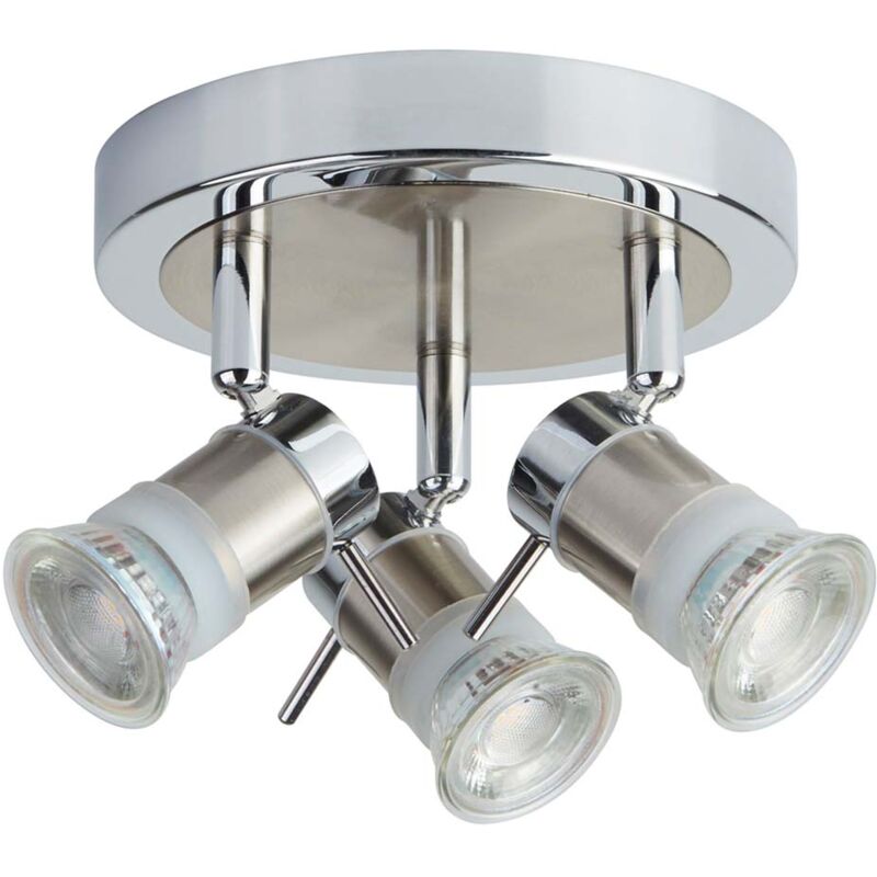 Descrizione Questo faretto a 3 fiamme Aries cromo/argento satinato è ideale per illuminare la cucina, il bagno o qualsiasi altra stanza della casa. La finitura cromata e argento satinato conferisce a qualsiasi soffitto un aspetto pulito e moderno. L'angolo delle luci può essere regolato per creare l'effetto luminoso perfetto. Il faretto da soffitto è conforme alla classe di protezione IP44 ed è completamente a prova di schizzi. Completo di lampada LED IP44. Dettagli • colore: cromo / argento satinato • finitura: placcato • materiale lampada: acciaio strutturale • colore paralume: cromo / argento satinato • materiale paralume: acciaio strutturale • altezza: 13 cm • larghezza: 18 cm • Sporgenza: 13 cm • classe di protezione: IP44 • posizione dell'interruttore di alimentazione: NO • tipo di lampada: GU10 LED IP44 • presa: GU10 • numero di prese: 3 • potenza: 3 x 5 W • lampadine incluse: sì • colore della presa: bianco • materiale della presa: ceramica • temperatura colore: 3000K
