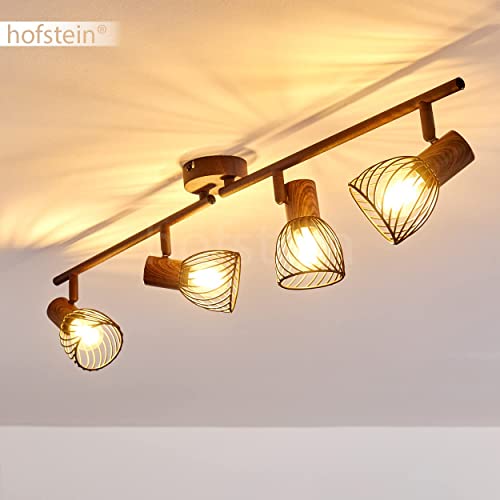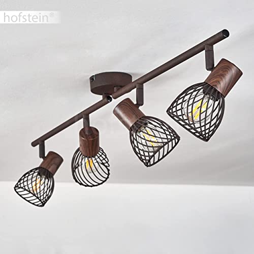 Lampada a soffitto Arjen, lampada a soffitto in metallo/legno color ruggine/marrone, a 4 luci, con faretti orientabili, 4 x attacco E14, spot in design retro/vintage, senza lampadina/e