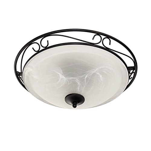 Lampada da soffitto Athen tonda stile rustico vetro bianco nero opaco design alabastro 3xE27 D:47cm ideale per soggiorno, sala da pranzo