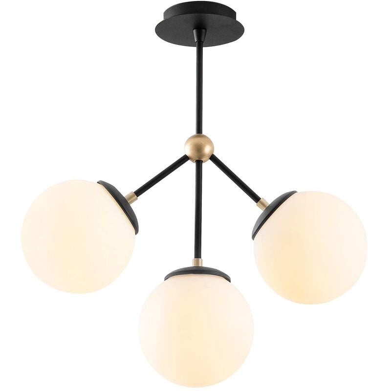 Lampada da soffitto Struttura in metallo Paralume in vetro Dimensioni: 45 x 15 cm Altezza: 51 cm Diametro paralume: 15 cm Altezza paralume: 15 cm Diametro della base: 10 cm Altezza base: 3 cm Tipo di filettatura: 3 x E 27 Max 40 W IP20 Colore: bianco Nero