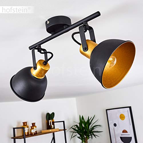 Lampada a soffitto Borik, lampada a soffitto in metallo in nero/oro, 2 luci, con faretti regolabili, 2 x attacco E14, faretto dal design retro/vintage, senza lampadina/e