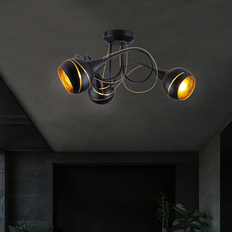 Descrizione Questa stravagante plafoniera in metallo nero con elementi dorati mette perfettamente in scena gli insoliti vetri neri della lampada con i loro motivi a foglia d'oro. Con le sue braccia ricurve, attira l'attenzione. Altri elementi della stessa serie possono essere perfettamente combinati e donare al tuo soggiorno un'atmosfera straordinaria. dettagli apparecchio • Tipo di lampada: plafoniera • Materiale: metallo, vetro • Colore: nero, foglia oro • Diametro x altezza in cm: 45 x 21 • prese: 3x E14 • lampadine incluse: Sì • lampadine: 3x 5.5 Watt• Flusso luminoso: 3x 470 lumen• Colore luce: bianco caldo • Alimentazione: 230V, 50Hz Dettagli illuminante • Tipo di illuminante: LED • Attacco: E14 • Forma: sfera (bianco-opale) • Materiale: plastica• Grado di protezione: IP20 • Flusso luminoso: 470 lm (Lumen) • Consumo energetico: 5,5 kWh/1000h • Temperatura colore: 3000 K (Kelvin) • Colore della luce: bianco caldo • Resa cromatica (Ra): 80 • Consumo energetico nominale: 5,5 W