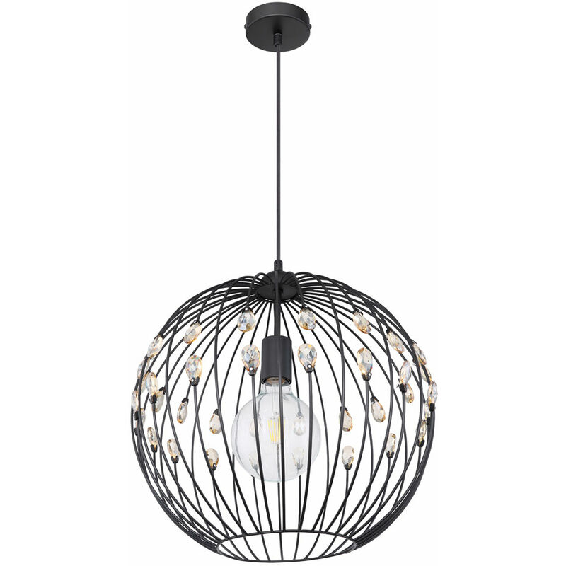 Descrizione Questa lampada a sospensione nera opaca colpisce per il suo design retrò e allo stesso tempo colpisce per i cristalli K9 utilizzati nel paralume (Ø40cm). Inoltre, i paralumi a forma di griglia in metallo nero creano un interessante aspetto ombroso sulle pareti. Questa lampada ha una lunghezza totale di 120 cm e ti garantisce un colpo d'occhio nella tua zona pranzo e soggiorno. Scegliendo liberamente la sorgente luminosa (E27 / max. 1 x 60W) puoi determinare tu stesso l'intensità della luce e il colore della luce di questa luce per interni. A causa della loro longevità, si consiglia di utilizzare lampade a LED. Puoi utilizzare altri modelli di questa serie per migliorare ulteriormente l'aspetto del tuo soggiorno. Dettagli • Lampada a sospensione, metallo, nero opaco • K9 cristalli ambra • Cavo tessile, nero • D: 400 • A: 1200 • escluso 1xE27 60W 230V • Materiale: metallo, nero opaco • Paralume: metallo, nero opaco, cristalli K9 • Colore: nero opaco • Colore paralume: nero