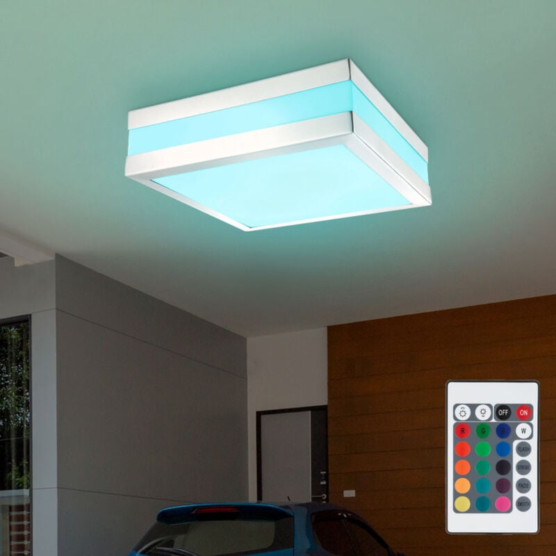 Descrizione Plafoniera moderna in acciaio inossidabile per uso esterno. Abbellisci e, soprattutto, dona luminosità al tuo spazio esterno con questa moderna plafoniera. Grazie alla classe di protezione IP44, questa lampada è protetta dagli spruzzi d'acqua ed è quindi ideale per l'uso esterno. Grazie ai diversi colori, puoi decidere se vuoi aumentare l'atmosfera nel tuo giardino, ravvivare la tua terrazza o dare al tuo giardino una dose extra di stile. Con il telecomando incluso nella consegna, puoi facilmente accendere, spegnere e regolare le luci di design comodamente dal tuo divano. Nella fornitura sono incluse due lampade LED RGB con telecomando. Dettagli • Tipo di lampada: lampada da soffitto • Materiale: acciaio inossidabile lucidato • Paralume: plastica opalina • Grado di protezione: IP44 • Dimensioni LxPxA in cm: 28,5x28,5x8,5 • Attacco: 2x E27 • Lampadine incluse: sì • Potenza lampada: 2x 8,5 watt • Flusso luminoso totale: 2x 806 lumen (totale: 1612 lm) • Colore della luce