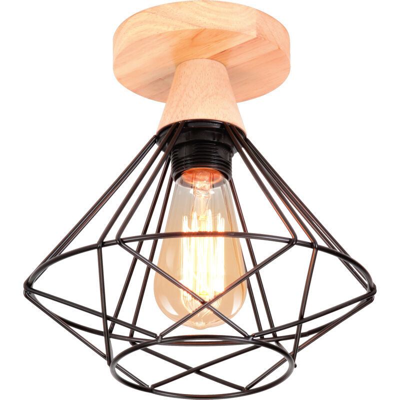 Lampada da Soffitto Industriale in Metallo e Legno Design Retrò Lampada Forma di Diamante per Scale, Corridoio, Ingresso Nero