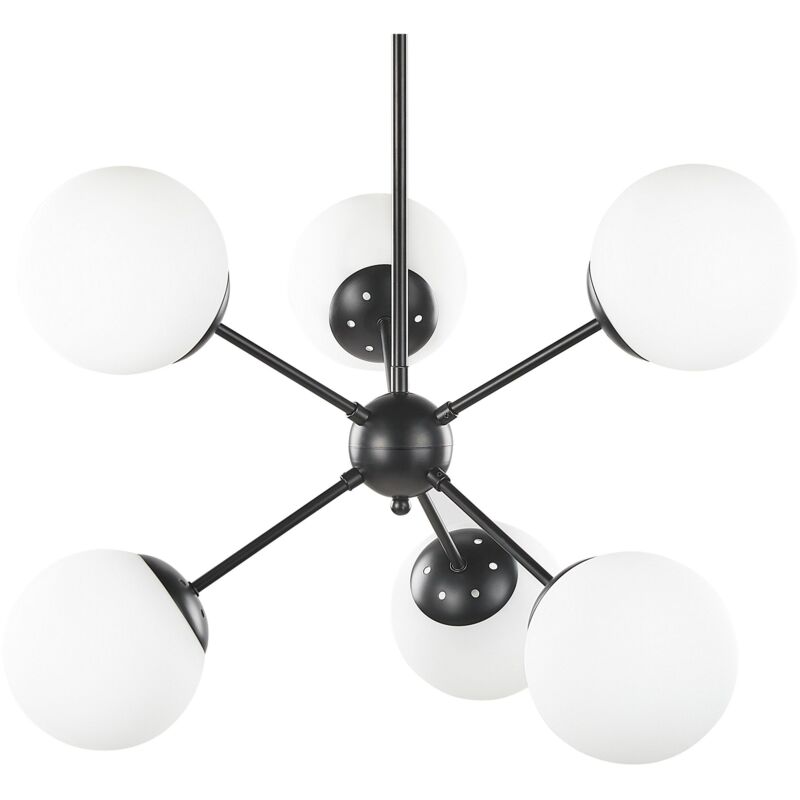 Moderna lampada a sospensione a 6 punti luce. Dona luce nuova al salone o alla camera da letto con quest'originale lampadario. Fusione perfetta tra design moderno e stile industriale si adatta a qualsiasi stanza della casa. Grazie ai suoi 6 punti luce infine, illumina con gusto e decora con classe. Dettagli: Tipo di prodotto: Lampadario Stile: Moderno Colore principale: Nero Tipo di materiale: Metallo Materiale principale: Ferro Materiale secondario: Vetro Materiale del paralume: Vetro Potenza elettrica: 40W Finitura: Opaca Codice IP di protezione: IP 20 Lampadine richieste: 6 Voltaggio: 220-240 V (50 Hz) Dimensioni: Lunghezza del cavo: 70 cm Profondità: 58 cm Larghezza: 58 cm Altezza: 100 cm Peso: 3 kg L'offerta include: 1 x Lampadario, Non include: Lampadine Caratteristiche chiave: Ideale come luce ambiente, Ideale sia per la camera da letto che per il soggiorno, Adatto a ogni stile di decorazione d'interni, Design classico, Materiali di alta qualità, durevoli e facili da pulire