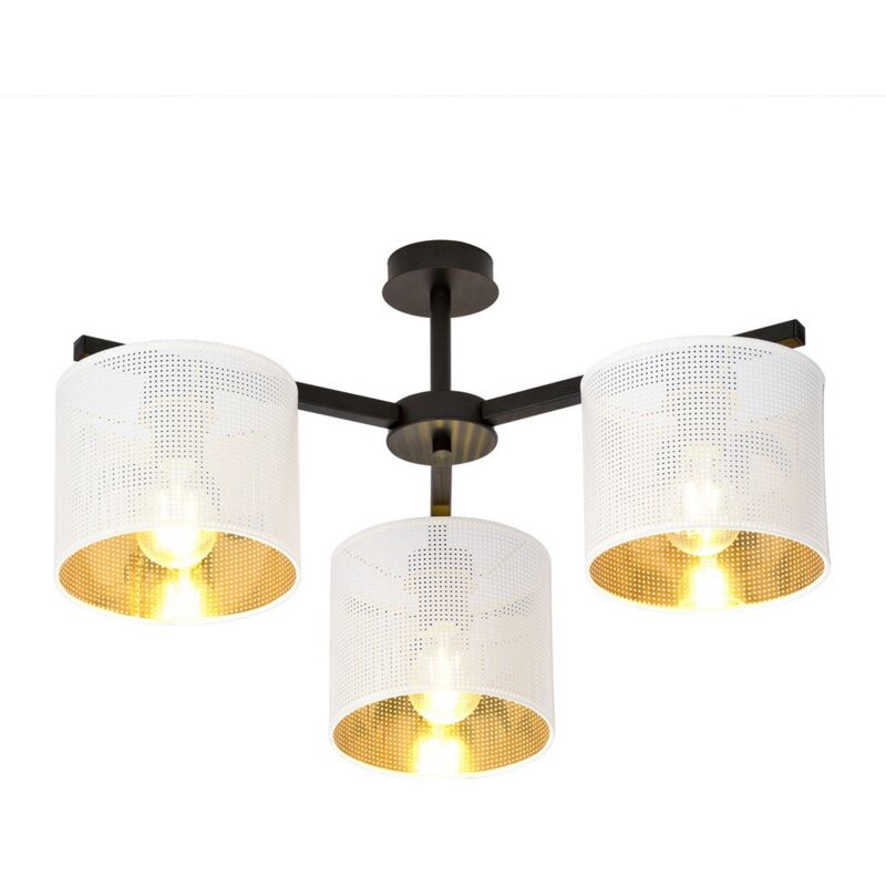 Questa Lampada a Soffitto è la soluzione perfetta per illuminare con stile la casa o l'ufficio. Grazie al suo design è ideale per la zona giorno e la zona notte. Kit di montaggio incluso, facile da pulire e facile da montare. Colore: Nero, Bianco, Oro Materiale: Acciaio verniciato a polvere, Tessuto Set: 1 Dimensioni Prodotto: 55x31x55 cm Peso Prodotto: 2,70 Peso Supportato: - Info Lampadine: 3 x E27, 230V, 10W MAX LED, IP20 Lampadina: Non Inclusa Dimensioni Imballo: 60x60x52 cm Peso Imballo: 3,70 Numero di Colli: 1