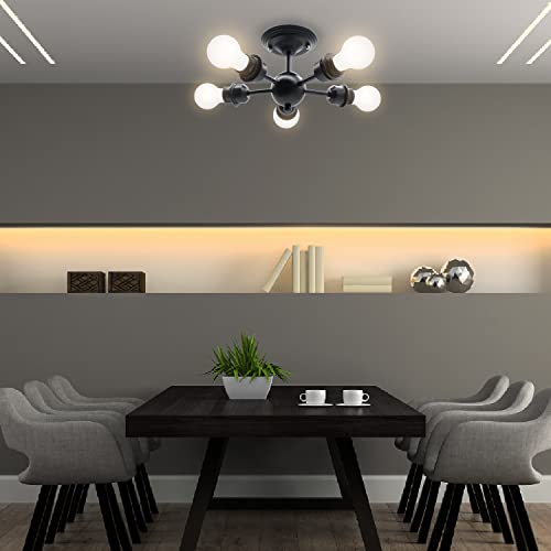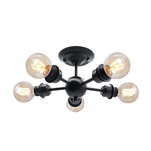 U/D Lampada da Soffitto Lampadario Sputnik Metallo Plafoniere da Soffitto 5 Teste, Lampadari Bagno Moderni Nero E27 Lampadario Corridoio, per Camera da Letto, Cucina, Soggiorno(lampadina non inclusa)