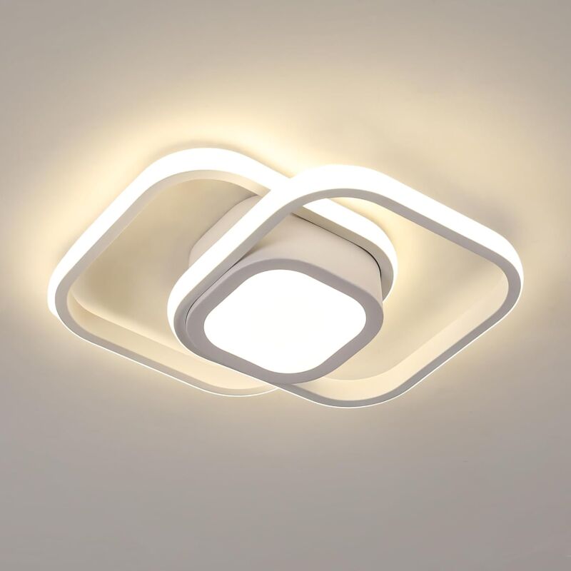 Parametri lampada - - Dimensioni: 32*25*6 cm/12,6*9,84*2,36 pollici, Colore: Bianco, Peso: 0,7 kg, Materiale: Alluminio+Acrilico, Potenza: 32 W, Voltaggio: CA 220 V, Temperatura colore: 4500 K, Non -Dimmerabile. [Design moderno] - La plafoniera a LED ha l'aspetto di due forme geometriche quadrate sovrapposte, rendendola più tridimensionale e artistica. Il corpo della luce bianca è semplice ed elegante, può attirare gli occhi di tutti verso il soffitto e integrarsi perfettamente con i vari stili delle case moderne. [Robusto e durevole] - Il corpo quadrato della plafoniera a LED è realizzato in alluminio di alta qualità, processo di verniciatura a cottura multistrato, anticorrosione, antiruggine, lunga durata. Nel frattempo, il paralume acrilico ha una buona trasmissione della luce e dissipazione del calore, che può proteggere meglio i tuoi occhi dallo sfarfallio e dall'abbagliamento. [Sorgente luminosa a LED] - Chip LED integrato ad alta luminosità, luce morbida e uniforme, nessuno