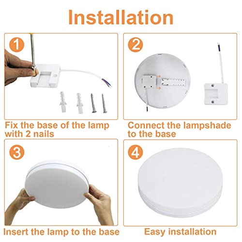 【Installazione semplice】Moderni led luce rotonda non è necessario praticare fori nel soffitto. Basta usare 2 chiodi per fissare il portacarte. Il plafoniera LED adotta un supporto in plastica resistente al calore, che rende la struttura del corpo lampada più robusta