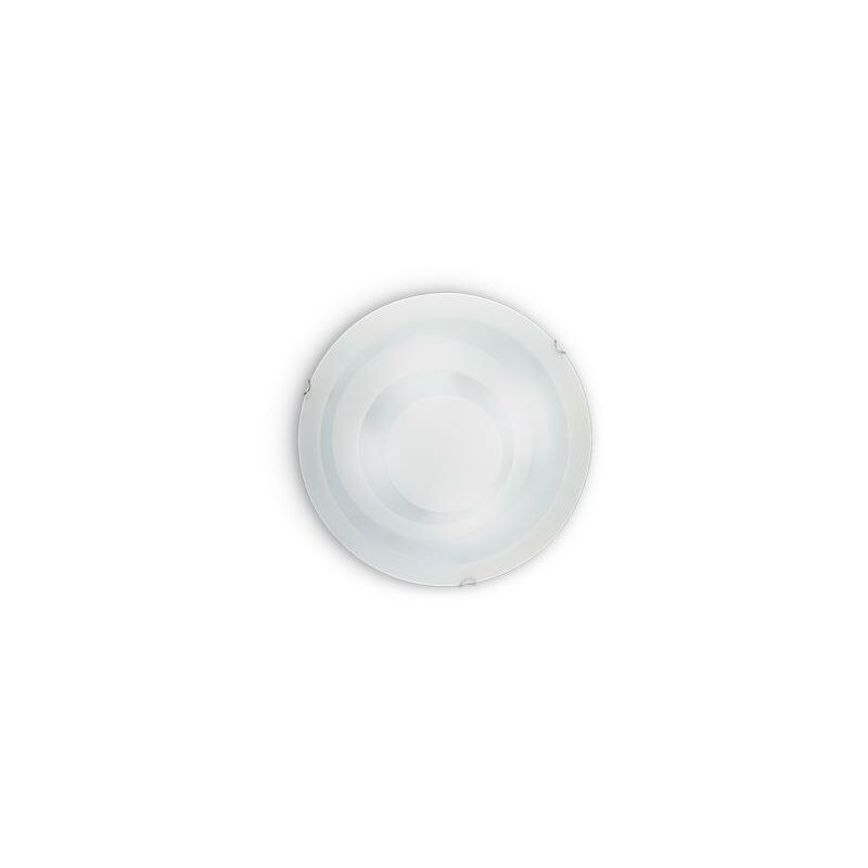 Diffusore in vetro trasparente soffiato ed acidato. Decorazioni serigrafate in bianco. Ganci ferma vetro in metallo cromato.