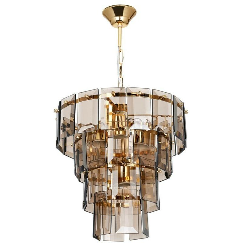 Lampada da soffitto a 4 luci vetro fumè e oro - Dimensioni 62x34 cm Lampada da soffitto a 4 luci Falez MDL3829 vetro fumè e oro. Caratteristiche: Materiale metallo e vetro fumè. Colore oro. Forma 4 stadi di rettangoli di vetro. 4 luci. Altezza 62 cm. Larghezza 34 cm. Attacco lampadine 4 x E27. Facile da pulire.