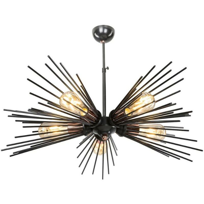 Lampada da soffitto a 5 luci in metallo nero, forma stalattiti, altezza 50 cm, larghezza 69 cm Lampada da soffitto a 5 luci Salem MDL3806 metallo nero. Caratteristiche: Materiale metallo. Colore nero. Forma stalattiti. 5 luci. Altezza 50 cm. Larghezza 69 cm. Attacco lampadine 5 x E27. Facile da pulire.
