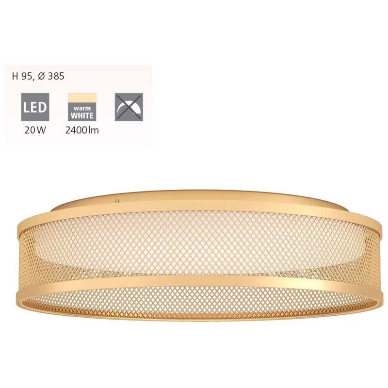 Lampada a soffitto Luppineria in acciaio in ottone LED 20w 3000k H: 9,5 cm Ø38,5 cm Dimensioni in mm: Altezza: 95, diametro: 385 Peso in Kg: 0.95 Tipo di agente luminato/versione: LED Lampade contengono: Sì Prestazioni massime in Watt: 20w Colore della luce in Kelvin: 3000k Colore della luce: White White Flusso di luce in Lumen: 2400 Classe di protezione: IP20 Dimmbar: No switch: no materiale per la casa: acciaio Colore abitativo: Brass-Matt Materiale di vetro/picchi: Plastica Colore vetro/ombrello: bianco