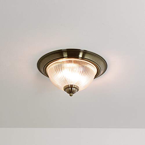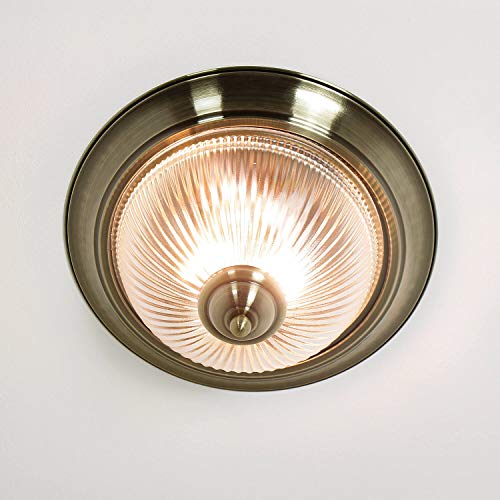 Lampada da soffitto metallo vetro in ottone anticato IP44 bagno cucina Ø31 cm E14 plafoniera rotonda Art Nouveau a 2 luci sala da pranzo BARMSTEDT