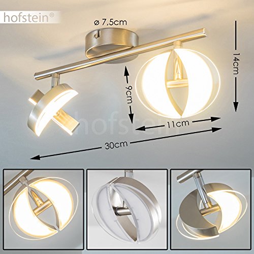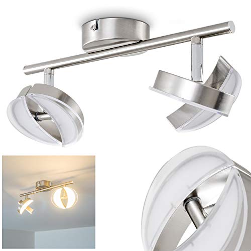 Lampada da Soffitto LED Moderna Quinte - Plafoniera con 2 Faretti LED Mobili e Orientabili rifinita in Nichel Opaco 1000 Lumen - Lampada ideale per Cucina Soggiorno Living Camera da Letto