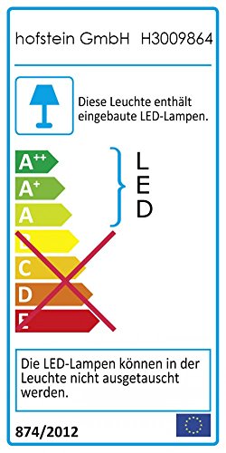 Questa lampada è dotata di lampadine LED integrate della classe di efficienza energetica da A++ a A su una scala da A++ (alta efficienza) a E (bassa efficienza) Le lampadine non possono essere sostituite.