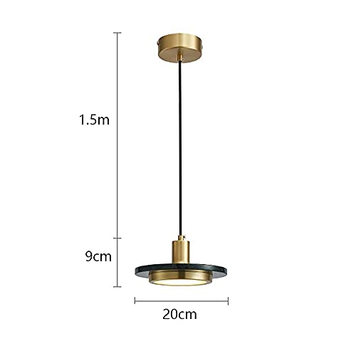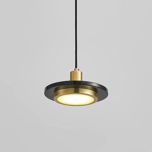 Lampada da soffitto a LED moderna in stile nordico, rotonda, stile Art Deco, in rame, 12 W, con paralume in marmo verde e cavo regolabile da 1,5 m, lampada a sospensione per cucina, soggiorno,