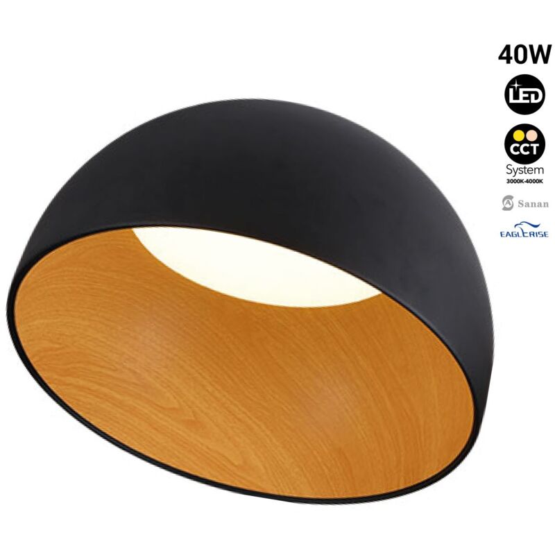 Lampada LED da soffitto dall'originale design inclinato. È composta da una struttura in alluminio con effetto legno all'interno e da un diffusore in policarbonato. Grazie al suo design, è in grado di integrarsi naturalmente in un'ampia gamma di decorazioni. Incorpora un driver EAGLERISE e un chip LED Sanan, che fornisce un'illuminazione omogenea ed efficiente con una potenza di 40W. Il suo sistema CCT permette di selezionare la temperatura di colore, tra bianco caldo (3000K) e bianco neutro (4000K), consentendo di scegliere il tipo di luce che meglio si adatta alle esigenze di ogni progetto. Disponibile in bianco e nero.