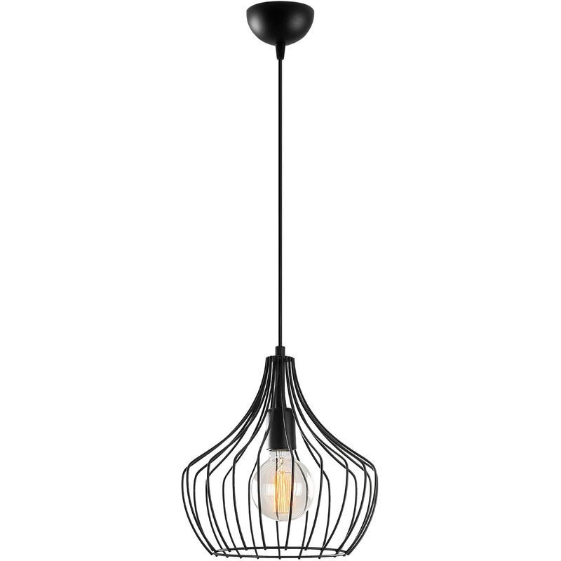 Lampada da soffitto Struttura in metallo Diametro: 27 cm Altezza: 126 cm Diametro paralume: 27 cm Altezza paralume: 30 cm Diametro della base: 10 cm Altezza base: 6 cm Lunghezza cavo: 90 cm Tipo di filettatura: E 27 Max 40 W IP20 Colore: nero