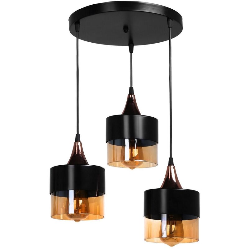Lampada da soffitto Struttura in metallo Laccato rame Paralume in vetro Diametro: 30 cm Altezza: 25 - 70 cm Altezza regolabile Vernice elettrostatica essiccata al forno Tipo di filettatura: E 27 Max 60 W Tensione massima: 220-240 V Colore: nero