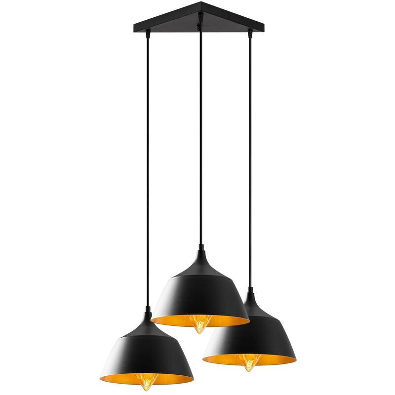 Lampada da soffitto Struttura in metallo Dimensioni: 52 x 52 cm Altezza: 128 cm Diametro del paralume: 25 cm Altezza paralume: 21 cm Altezza regolabile Dimensioni della base: 40 x 40 x 40 cm Lunghezza cavo: 90 cm Tipo di filettatura: 3 x E 27 Max 40 W IP20 Colore: nero
