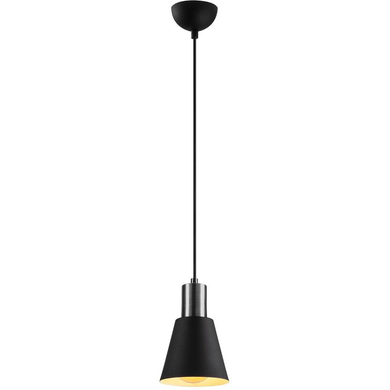 Lampada da soffitto Struttura in ferro Diametro: 14 cm Altezza: 114 cm Diametro paralume: 14 cm Altezza paralume: 12 cm Altezza regolabile Diametro della base: 10 cm Altezza base: 6 cm Lunghezza cavo: 90 cm Tipo di filettatura: E 27 Max 40 W IP20 Colore: nero Nichel