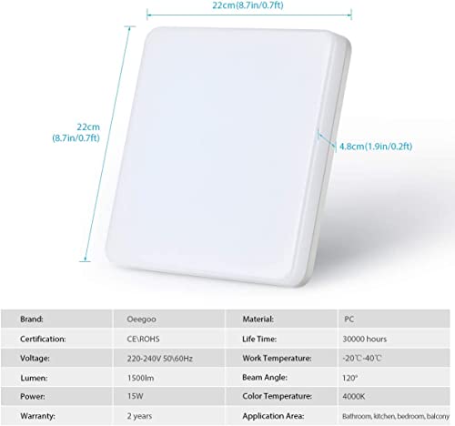 Lampada da soffitto LED, Oeegoo 15W LED Sensore di luce a Plafoniera movimento, 1500lm IP44 impermeabile Bianco naturale 4000K Plafoniera LED per soggiorno Sala da letto Bagno Cucina Balcone Corridoio
