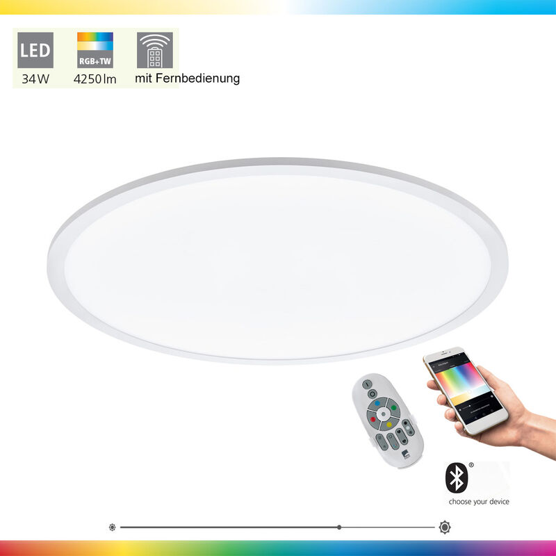 Lampada del soffitto del pannello LED SARSINA-C Weiss H: 5 cm Ø: 60 cm Dimmabile 2700-6500K con funzione Connect Lampada a soffitto a LED a LED SMART con app e telecomando controllabile (incl.) Dimmabile, colori chiari regolabili: bianco caldo, bianco neutro, bianco freddo e colorato (RGB) Funzioni di app: timer, luce notturna, crepuscolo e simulazione della presenza e molto altro. /ul> Il sistema di luminaire di Eglo Crosslink è compatibile al 100% con il sistema Eglo Connect e ti consente di controllare e programmare la luce nella tua casa individualmente. Basta connettersi tramite il telecomando Connect o l'app di controllo intelligente gratuito di Awox con le luci e controllarle singolarmente o in gruppo. Scegli tra uno spettro impressionante di 16 milioni di colori e 50.000 toni bianchi, la luminosità è gradualmente diminuita e crea il tuo ambiente perfetto per ogni momento! Vantaggi: Installazione rapida e facile: le lampade possono essere controllate direttamente con eglo