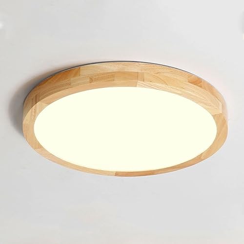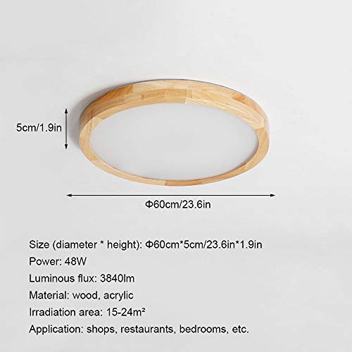 Lampada da soffitto a LED 48W, Plafoniere in legno moderne, dimmerabile con telecomando 3840lm, plafoniera in legno Φ60cm rotonda e ultrasottile per soggiorno, camera da letto, camera dei bambini