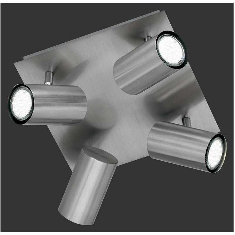 Lampada Soffitto Quadrata 4 Faretti Orientabili Nichel La lampada da soffitto Marley del brand Trio Lighting è una plafoniera composta da base quadrata e 4 faretti spot orientabili, realizzata interamente in metallo di colore nichel opaco. È possibile installare 4 lampadine con attacco GU10 max 35 watt, acquistabili separatamente. Un elemento pratico e versatile dal design lineare e moderno che si sposa bene ad ogni tipologia di ambiente sia residenziale che lavorativi o commerciale. Perfetto per essere installato ad esempio in una zona living, un ingresso o uno studio. Articolo disponibile anche di colore nero, bianco o ruggine. Caratteristiche: Marca: Trio Lighting Colore: Nichel Numero di faretti: 4 Attacco lampadine: GU10 Potenza massima: 35 watt Dimensioni: Non disponibili Materiale: Non disponibile
