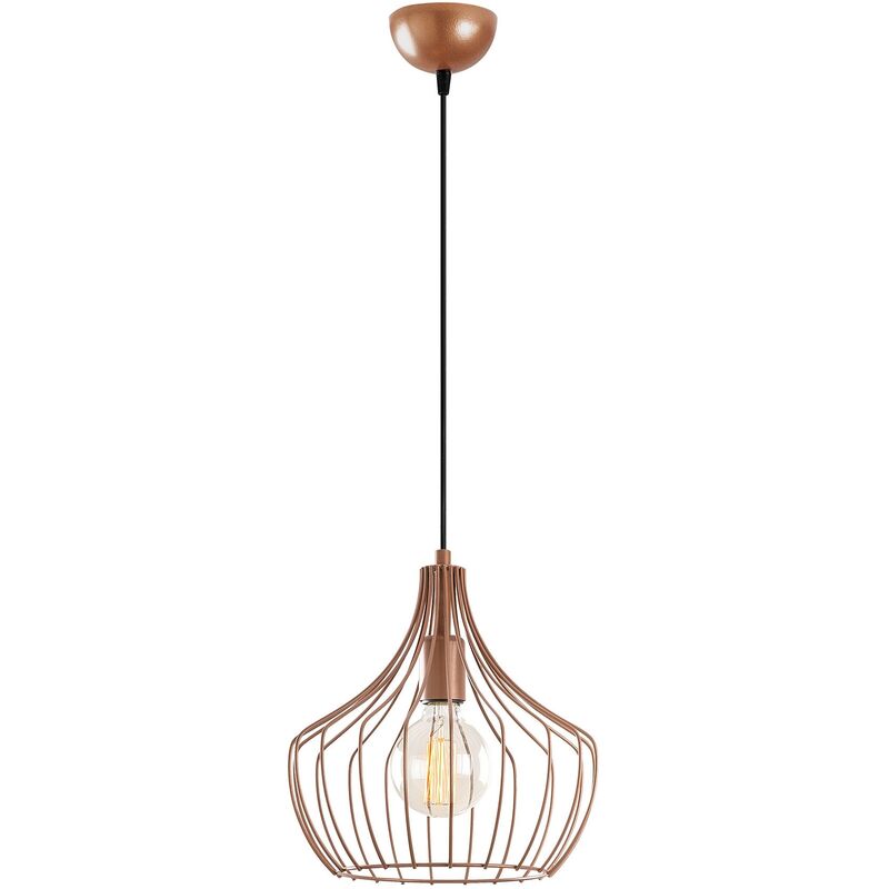 Lampada da soffitto Struttura in metallo Diametro: 27 cm Altezza: 126 cm Diametro paralume: 27 cm Altezza paralume: 30 cm Diametro della base: 10 cm Altezza base: 6 cm Lunghezza cavo: 90 cm Tipo di filettatura: E 27 Max 40 W IP20 Colore: rame