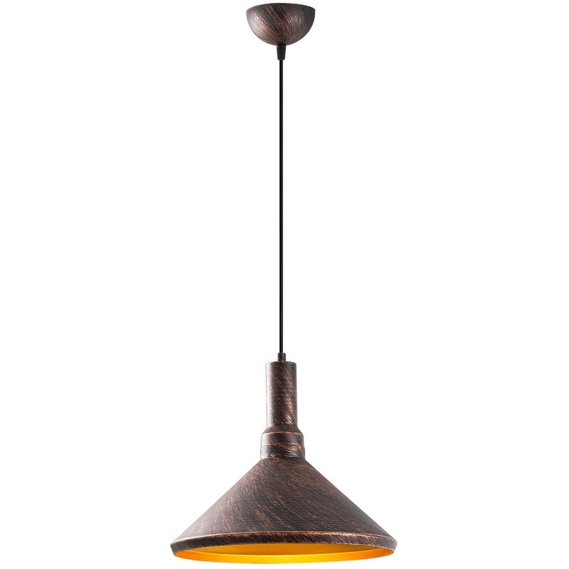 Lampada da soffitto Struttura in metallo Dimensioni: 36 x 36 cm Altezza: 130 cm Diametro del paralume: 36 cm Altezza paralume: 34 cm Altezza regolabile Diametro della base: 10 cm Altezza base: 6 cm Lunghezza cavo: 90 cm Tipo di filettatura: E 27 Max 40 W IP20 Colore: rame