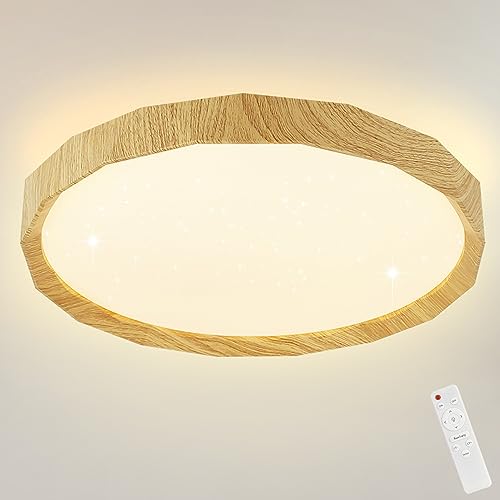 ZMH Lampada da soffitto a LED Soggiorno - 43W Camera da letto Plafoniera Ø40cm Dimmerabile con telecomando Legno rotondo Look per la cucina