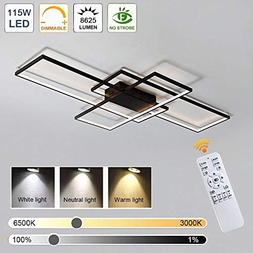 Lampada Da Soffitto A LED Lampada Da Soggiorno Dimmerabile Rettangolare Plafoniere 3 Anello Con Telecomando Lampadario Moderno Acrilico Paralume In Alluminio Cucina Applique A Muro,Nero,140cm(115W)