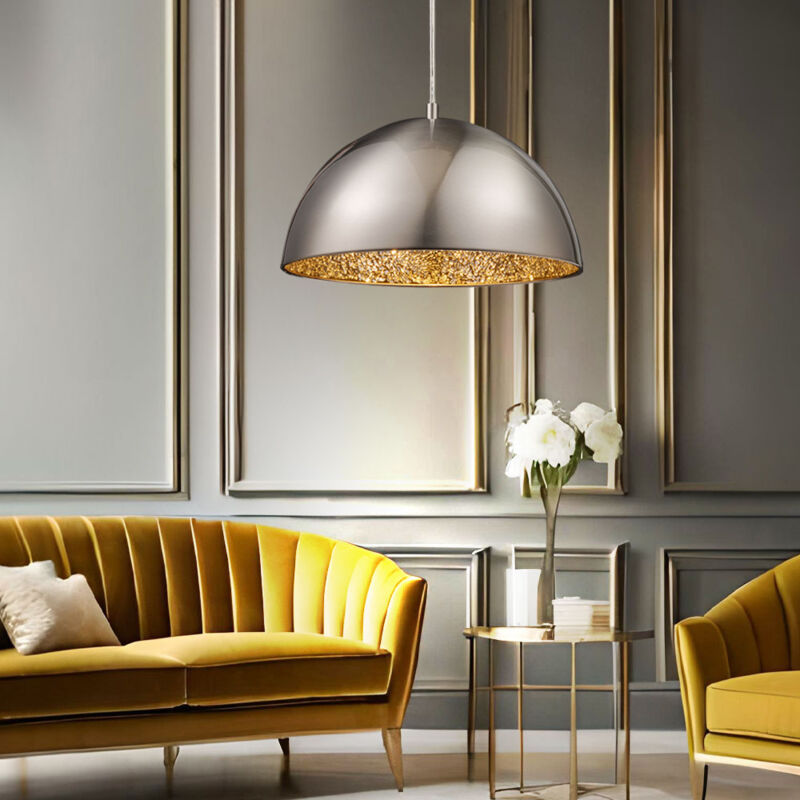 Descrizione Lampada a sospensione di alta qualità per il soggiorno Illumina la tua zona giorno con questa bellissima lampada a sospensione. All'interno del paralume, il mosaico color argento offre accenti unici e dona alla lampada un tocco di lusso. Nella lampada può essere utilizzata una lampada con attacco E27 e una potenza massima di 60 watt. La lampada non è inclusa nella fornitura. Dettagli • Tipo di apparecchio: sospensione • sospensione: nichel opaco con cavo tessile trasparente • paralume: metallo, nichel opaco, mosaico interno argento • Dimensioni DxH in cm: 30x121,5 • Attacco: 1x E27 • Lampadine incluse: No • Lampadine: max. 60 watt • Alimentazione: da 220 a 240 volt, da 50 a 60 Hz