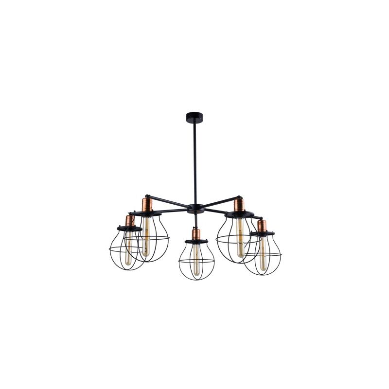 Tipologia sorgente luminosa: E27Sorgenti luminose: SostituibileMateriale principale: Acciaio verniciatoMateriale aggiuntivo I: Acciaio ramatoColore principale: NeroColore supplementare I: RameNumero di punti luce: 5Numero di sezioni luminose: 2Divisione delle sezioni: 2/3Contiene sorgente luminosa: NoPotenza massima: Solo 25W LEDIP: IP20Numero colli: 1Altezza imballo: 26 cmLarghezza imballo: 70 cmLunghezza imballo: 70 cmFrequenza: 50/60 HzTensione: ~220-230 VClasse di protezione: IMetodo di installazione: Bridge Ambiente: Salotto Stile: IndustrialeAltezza rivestimento soffitto: 3 cm Larghezza del rivestimento del soffitto: 8 cmPCN: 9405199000