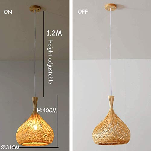 Lampada da soffitto a sospensione in vimini naturale vintage, lampadario intrecciato a mano in rattan E27, Lampadario da Soffitto regolabile in altezza, per caffè, soggiorno Luce pendente, Ø31cm