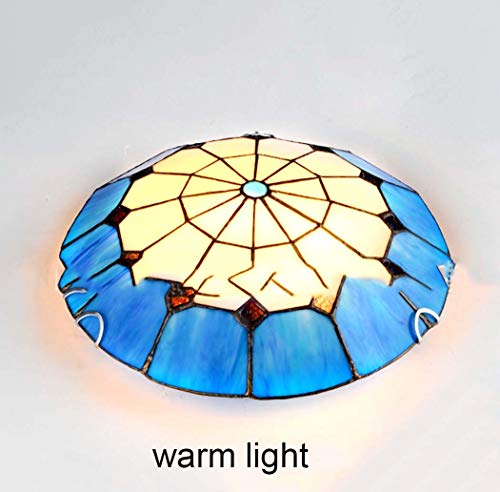 Lampada da soffitto a LED in stile Tiffany in plafoniera LED da incasso retro in vetro colorato blu per apparecchio di illuminazione ingresso corridoio camera da letto,Chip LED,Warmlight,40cm