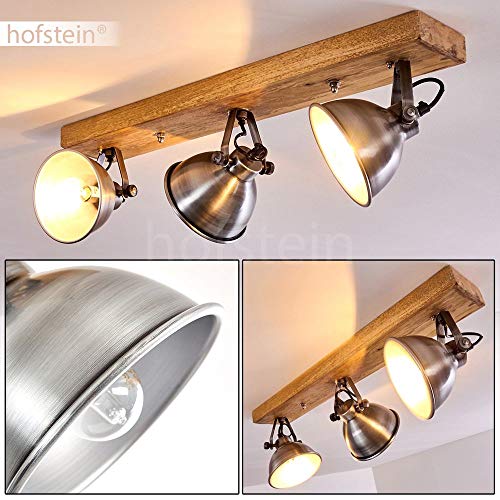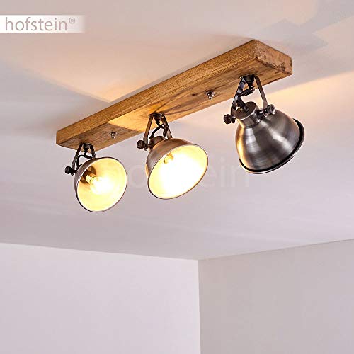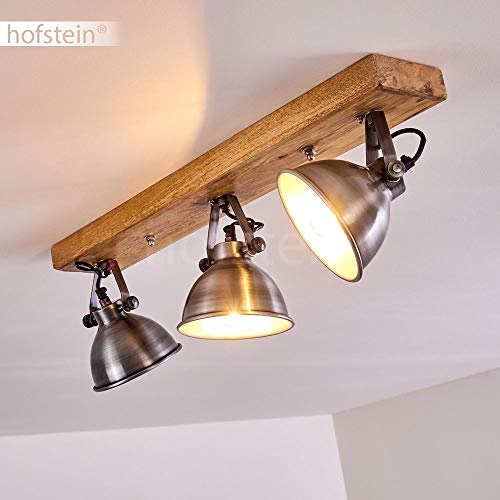 Lampada a soffitto Svanfolk, lampada a soffitto in metallo/legno in zinco/natura, 3 luci, con faretti orientabili, 3 x attacco E14, design retro/vinatge, senza lampadina/e