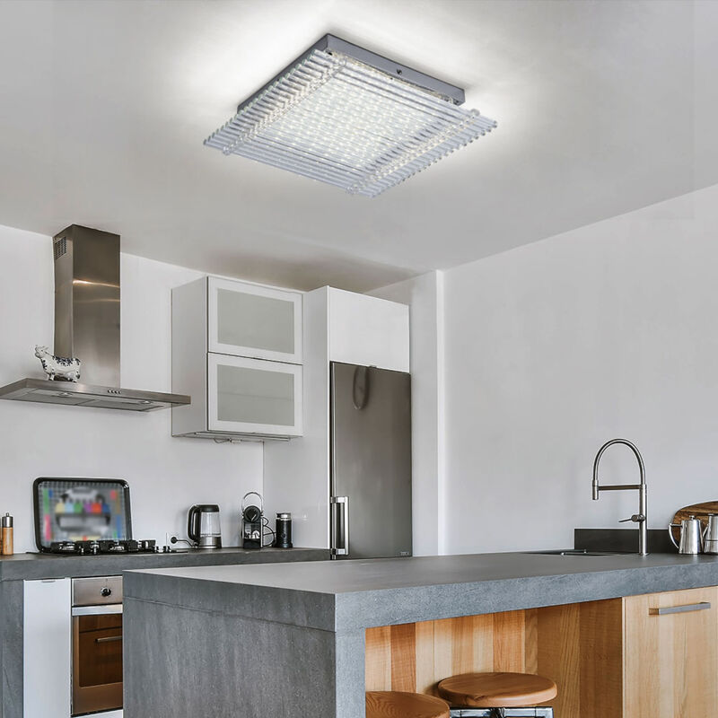 Descrizione Plafoniera di lusso con aste in vetro. Questa lampada colpisce per la sua meravigliosa combinazione di barre di metallo e vetro. Non importa se si tratta di un soggiorno, una sala da pranzo o una camera da letto, questa lampada da soffitto si adatta a quasi tutte le stanze. Lasciati sorprendere dal fascino che questa lampada dona alla tua casa. Rispetto alle luci normali, i faretti a LED consumano solo una minima quantità di elettricità e sono addirittura inferiori rispetto alle luci a risparmio energetico. Questo protegge l'ambiente e il tuo portafoglio. È inclusa una lampadina LED di alta qualità a risparmio energetico! dettagli • Tipo di lampada: lampada da soffitto • Materiale: metallo • Materiale del paralume: bacchette di vetro trasparente • Grado di protezione: IP20 • Dimensioni lunghezza x larghezza x altezza in cm: 32x32x8 • Presa: 1x LED • Lampadina inclusa: Sì • Potenza: 18 watt • Flusso luminoso: 1360 lumen • Colore chiaro: bianco neutro • Voltaggio: 230 volt