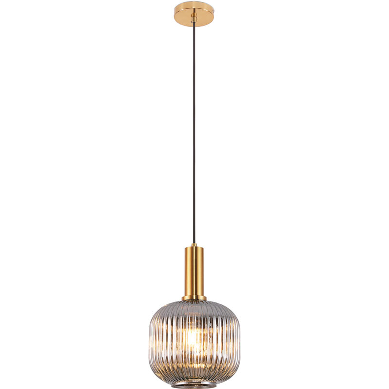 Porta a casa tua questa lampada da soffitto e appendila sopra il tavolo da pranzo o l'isola della cucina. Saprà illuminare e abbellire ai tuoi interni in modo unico. Ha un design moderno ed elegante, accentuato dalla base color ottone e dal paralume in vetro testurizzato. Siamo certi che la amerai. Dimensioni: cm x cm x cm (L x l x A)
