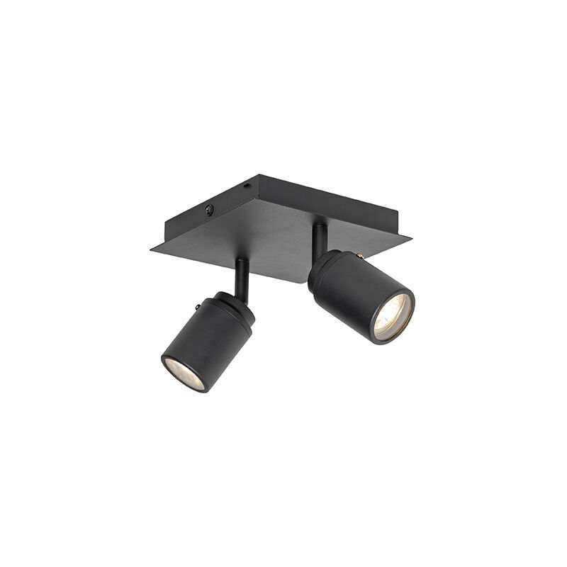 QAZQA Faretto da bagno moderno quadrato nero 2 luci IP44 - Ducha Wow, il faretto Ducha è davvero bellissimo. Si adatta perfettamente a un interno moderno. Questo faretto è realizzato in acciaio con alluminio e vetro ed è rifinito in nero. Ha una profondità di 17 cm, un'altezza di 14 cm e una lunghezza di 17 cm. La piastra di montaggio ha un'altezza di 2,5 cm, una lunghezza di 15 cm e una larghezza di 15 cm. Puoi completare Ducha con 2 lampadine, ciascuna con attacco GU10 con un massimo di 35 watt. Non dimenticare di ordinarle separatamente. Con un valore IP di IP44, il faretto è antispruzzo e adatto per l'uso in aree umide come intorno alla vasca da bagno. Puoi posizionare il faretto sul soffitto o contro il muro, a seconda di ciò che si adatta meglio al tuo interno. Dai un tocco moderno al tuo interno con il faretto Ducha! Portalampada: GU10 . Max 2 x 35 W, 230 V Adatto a: Algogene, LED Voltaggio: 220V/230V IP Classe di protezione: IP44 Funzioni extra: Regolabile: Dimmer escluso,No