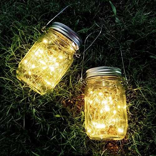 Lampada Solare, AGPTEK Vasetto in Vetro Illuminante Impermeabile Barattolo Lucine LED Lampadina Atmosfera per Cene, Giardino, Feste, Camera da Letto, Luce Bianco Caldo