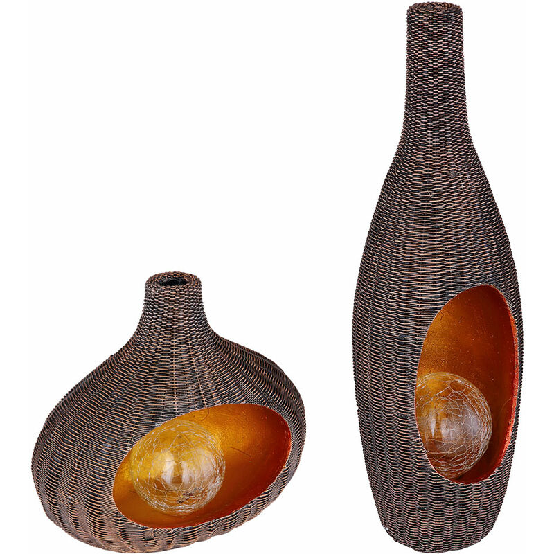Descrizione Questa lampada solare farà girare la testa nel tuo patio. La lampada solare a forma di vaso in rattan look con la sfera di vetro in crackle design crea la giusta atmosfera, non solo nelle calde serate estive. La luce si riflette sulla parte interna color oro della lampada e ha quindi un effetto accogliente e rilassante. Quando è completamente carico, il tuo vaso solare si illuminerà fino a 8 ore. Le lampadine a LED sono installate in modo permanente nella lampada. La fornitura include due luci! Dettagli ad alta luce • Tipo di lampada: lampada solare • Materiale: plastica, vetro • Colore: chiaro, marrone, oro • Grado di protezione: IP44 • Interruttore • Autonomia: 6-8 ore • Batteria inclusa: 1xAA 600mAh Ni-Mh 3V • Lunghezza x larghezza x altezza in cm: 14,3x13x45,5 • Illuminante: 1x LED • Lampadine incluse: Sì (installate in modo permanente) • Potenza della lampada: 1x 0,06 watt • Temperatura colore: 3000K (Kelvin) • Colore della luce: bianco caldo • Tensione: 3 V (volt)