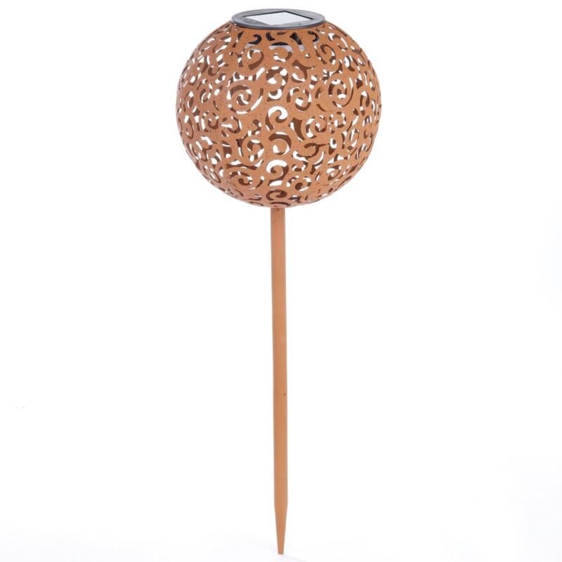 Questa luce solare a sfera da 18 cm della HI è una bellissima lampada per esterni sia per decorare che per illuminare i vostri percorsi, il giardino e il cortile. Questa lampada da giardino dall'aspetto marrone ruggine è dotata di un pannello solare resistente e policristallino, che converte la luce solare in elettricità e mantiene la batteria carica. Poiché non ha bisogno di elettricità, potete posizionare questa luce con palo dove ritenete opportuno. Inoltre, con il picchetto integrato, potete posizionarla saldamente nel terreno. Facile da utilizzare grazie all'Interruttore a pressione di accensione/spegnimento e una batteria ricaricabile inclusa alla consegna. Colore: Marrone ruggine Materiale: Metallo Dimensioni: 18 x 52,5 cm (Diam. x A) 1 LED bianco caldo Con pannello solare in policristallo Batteria necessaria: 1 batteria ricaricabile AA HR6 da 1,2 V (inclusa) SKU: 435249