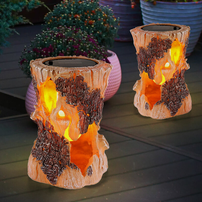 Descrizione Questa lampada solare formosa con effetto legno abbellisce la tua area esterna con un'altra fonte di luce. Sotto forma di un tronco d'albero scavato con un'altezza di quasi 17 cm e una lunghezza di 20 cm, all'interno del tronco si trova una sorgente luminosa a LED, che viene azionata con l'aiuto del circuito solare incluso. La lampadina a LED è installata in modo permanente. Due luci sono incluse nella fornitura. Particolare lampada • Tipo di lampada: lampada solare • Materiale: plastica • Aspetto registro • Colore: marrone, bianco • Batteria inclusa: sì • Autonomia: circa 6-8 ore • Grado di protezione: IP44 • Classe di protezione: 3 • Diametro x altezza in cm: 14,5x19,5 • Illuminante: 1x LED • Lampadine incluse: Sì (installate in modo permanente) • Colore della luce: bianco caldo • Alimentazione: 3 volt
