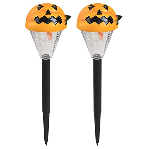 Lampada solare a forma di zucca di Halloween, 2 pezzi, decorazione per Halloween, IP65, impermeabile, a LED, per vialetti, cortili, prati, Halloween, Natale (zucca)